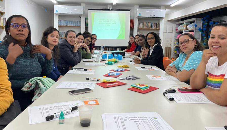 Os professores desempenham um papel fundamental na busca pela educação de qualidade. Eles devem estar constantemente se atualizando, participando das formações e buscando novas metodologias de ensino. Nessa formação, discutiu-se sobre essa habilidade metalinguística, que é a capacidade de pensar sobre a linguagem, envolvendo os seguintes níveis: consciência palavras, consciência silábica, consciência de rimas e aliterações e consciência fonêmica. O encontro proporcionou momentos teóricos e confecção de jogos que estimulem essa habilidade de forma lúdica e interativa, contribuindo para que as crianças reconheçam e manipulem os sons da linguagem, favorecendo a aprendizagem da leitura e da escrita, preparando essas crianças para o processo de alfabetização.
