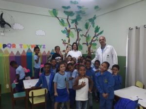 A palestra foi apresentada pelo dentista Leandro Brand, que conversou com os alunos sobre a escovação como prevenção, a visita ao dentista e a rotina de uma alimentação que ajude no fortalecimento dos dentes. As crianças adoraram o bate papo.