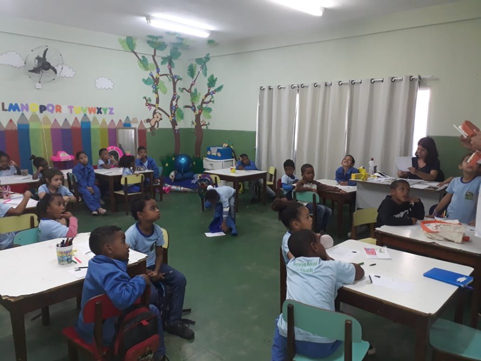 Alunos da E. M. Irene Ney Leite assistem palestra sobre escovação dos dentes