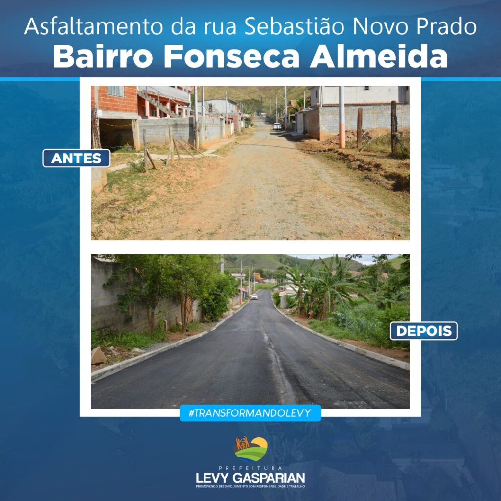 A Prefeitura de Levy Gasparian, finalizou o asfaltamento da rua Sebastião Novo Prado, no bairro Fonseca Almeida. É o governo Claudio Mannarino esparramando asfalto pela cidade! Confira esse antes e depois: