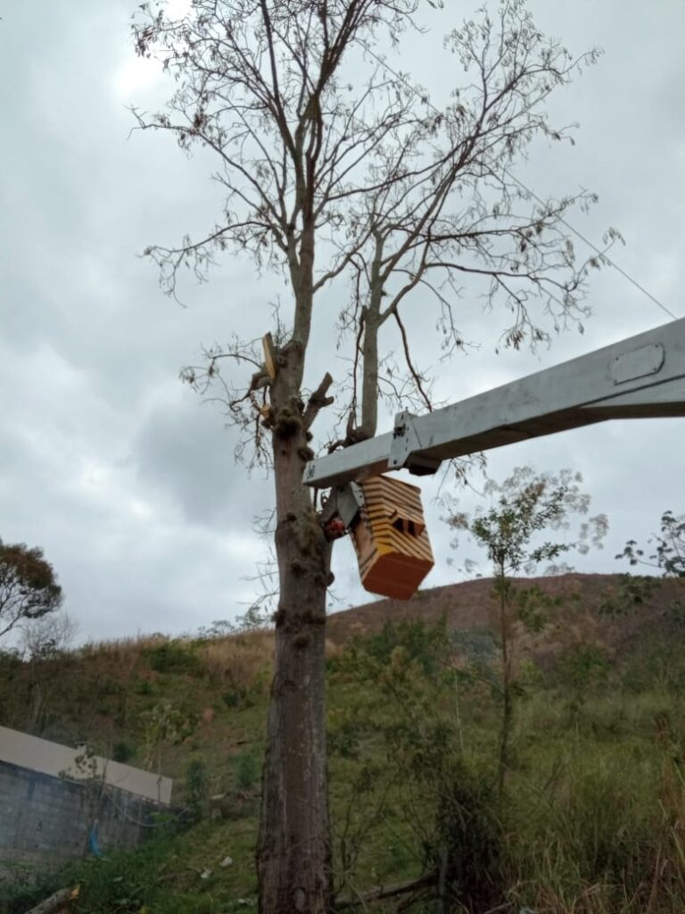 Hoje o serviço foi feito em Fernandes Pinheiro com o corte de uma árvore que estava colocando em risco os imóveis próximos.