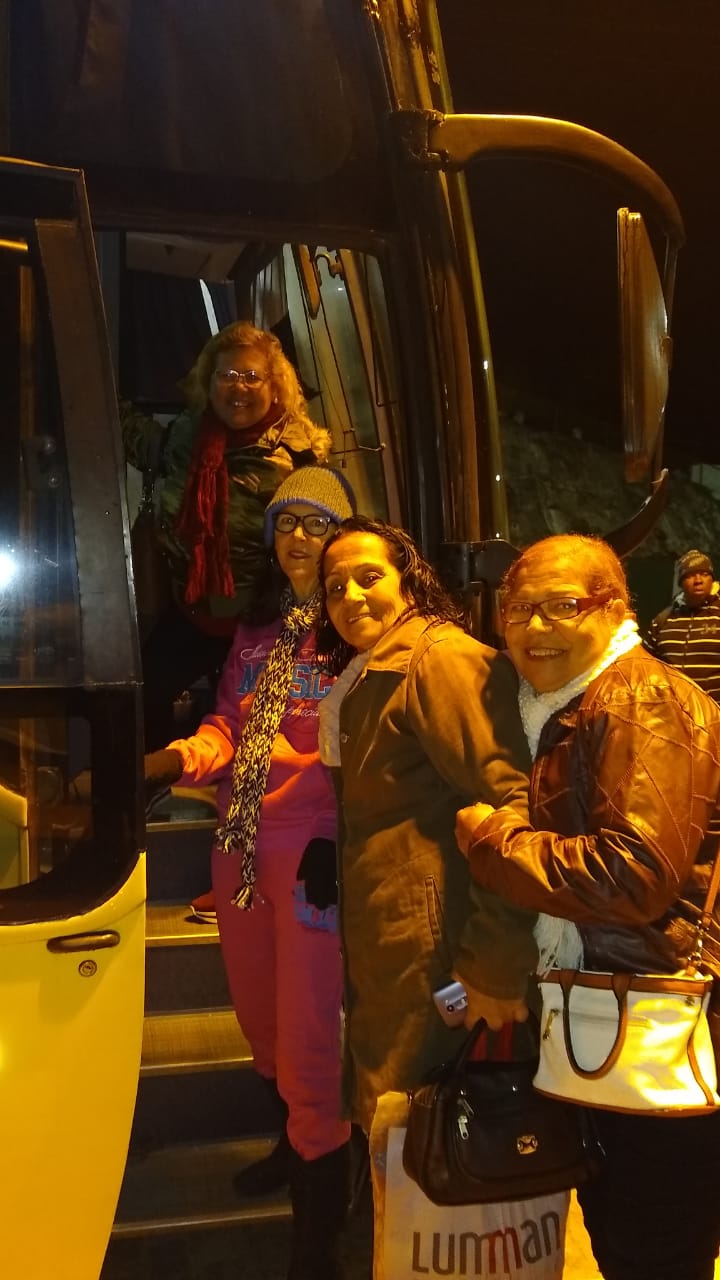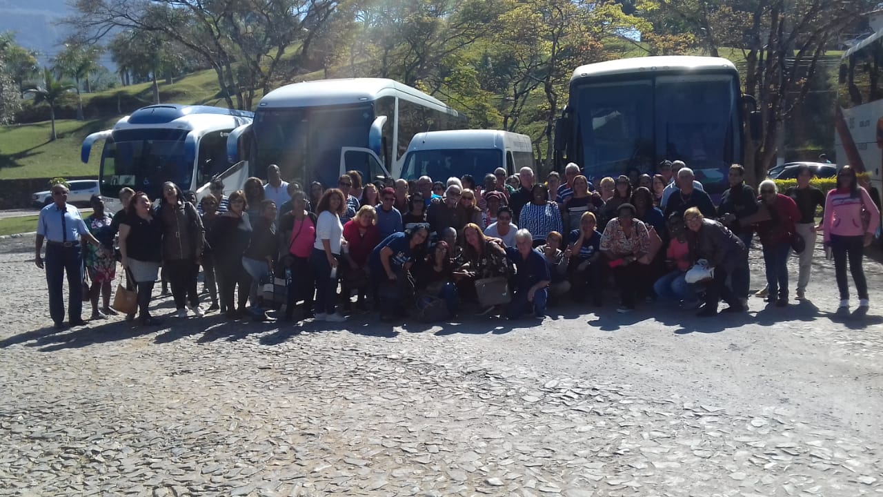 Os participantes foram transportados pelo confortável ônibus de turismo que o governo municipal adquiriu e tem sido muito utilizado para levar alunos da rede municipal e idosos a passeios realizados frequentemente a várias cidades turísticas.