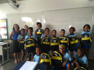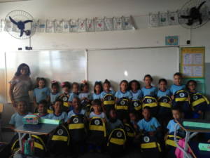 Acompanhado da Secretária de Educação, Adriana Berião Fedócio, o Chefe de Gabinete, Marcelo Fernandes, representando o Prefeito Valter Lavinas, agraciaram os alunos com o item personalizado.