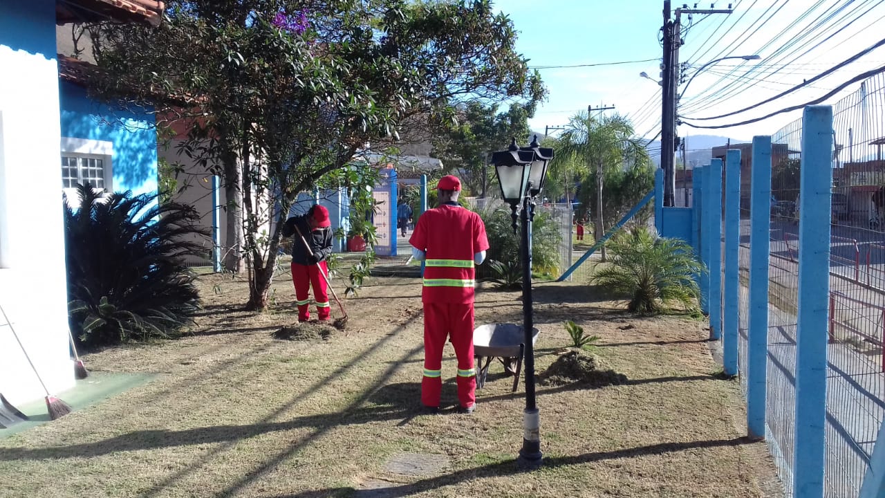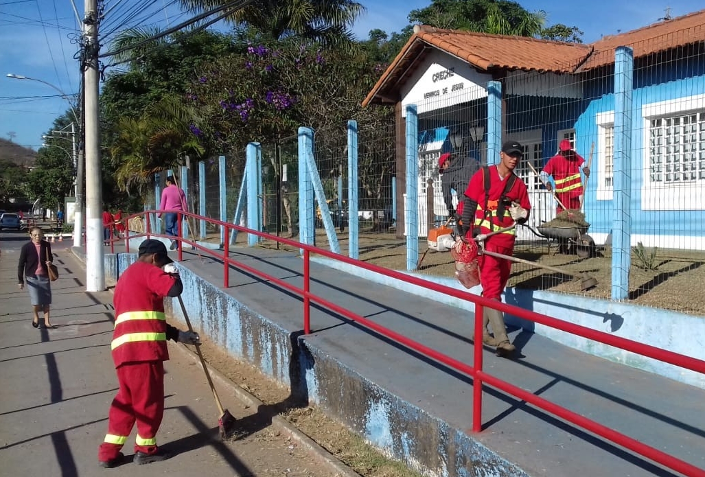 A Prefeitura está dando andamento nos trabalhos que envolvem a capina, roçada e poda de grama para deixar, principalmente a parte externa, entrada do prédio, em perfeitas condições de lazer para as nossas crianças, já que, elas adoram brincar e tomar o sol da manhã todos os dia e é aquela alegria.