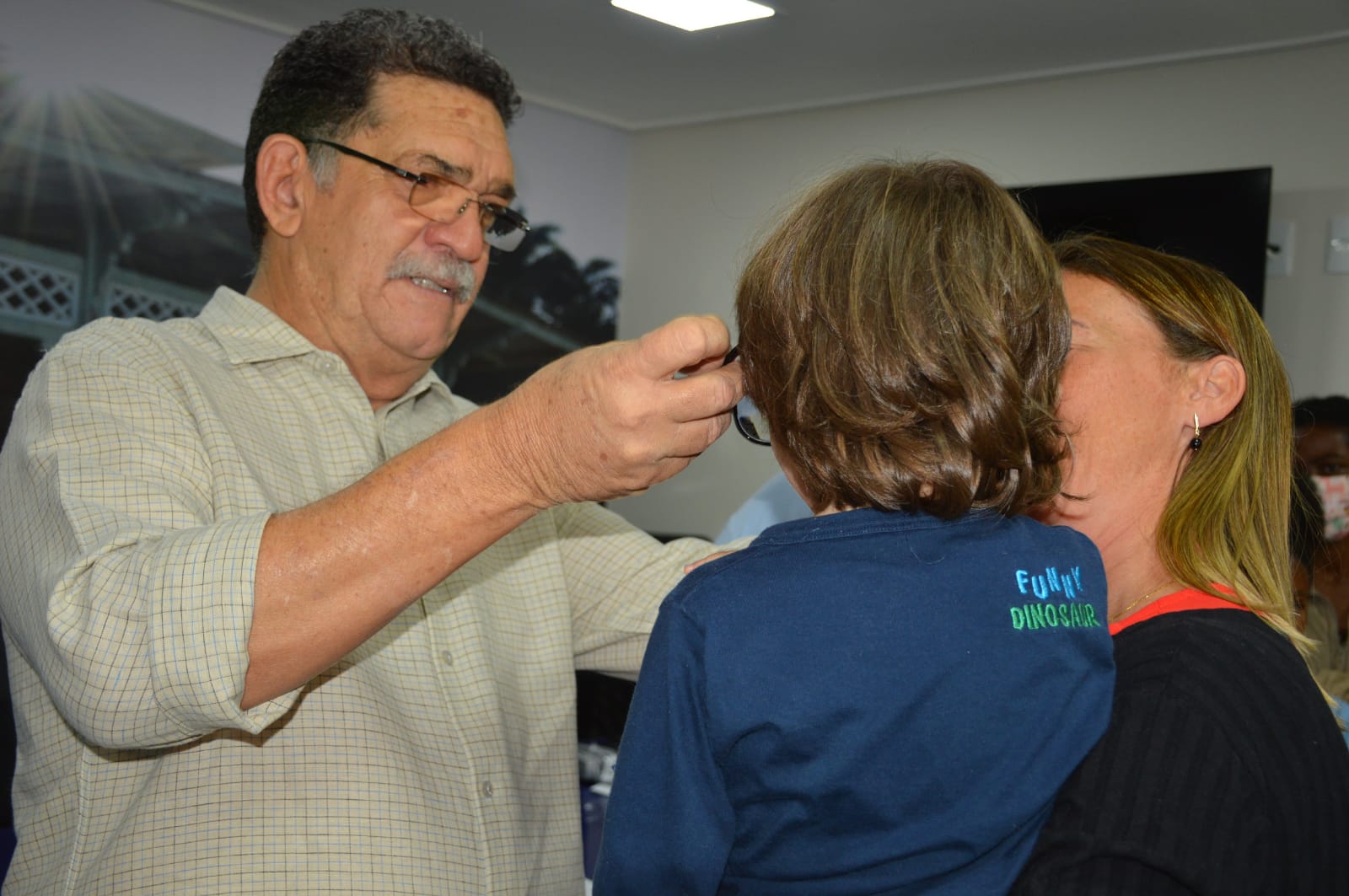 Todos os alunos, após passarem por atendimento oftalmológico, receberam óculos de grau. O objetivo é detectar, diagnosticar e tratar problemas oculares, favorecendo assim, o aprendizado, o desempenho e permanência dos alunos nas escolas.