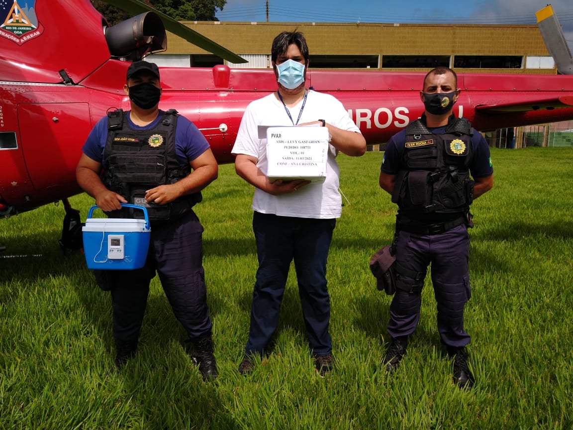 A secretaria de Saúde de Levy Gasparian recebeu nesta quinta-feira (11), em Paraíba do Sul, a sexta remessa contendo 80 doses da vacina CoronaVac. O recebimento ocorreu no campo do Riachuelo Esporte Clube. Apoio: Guarda Civil Municipal (GCM).